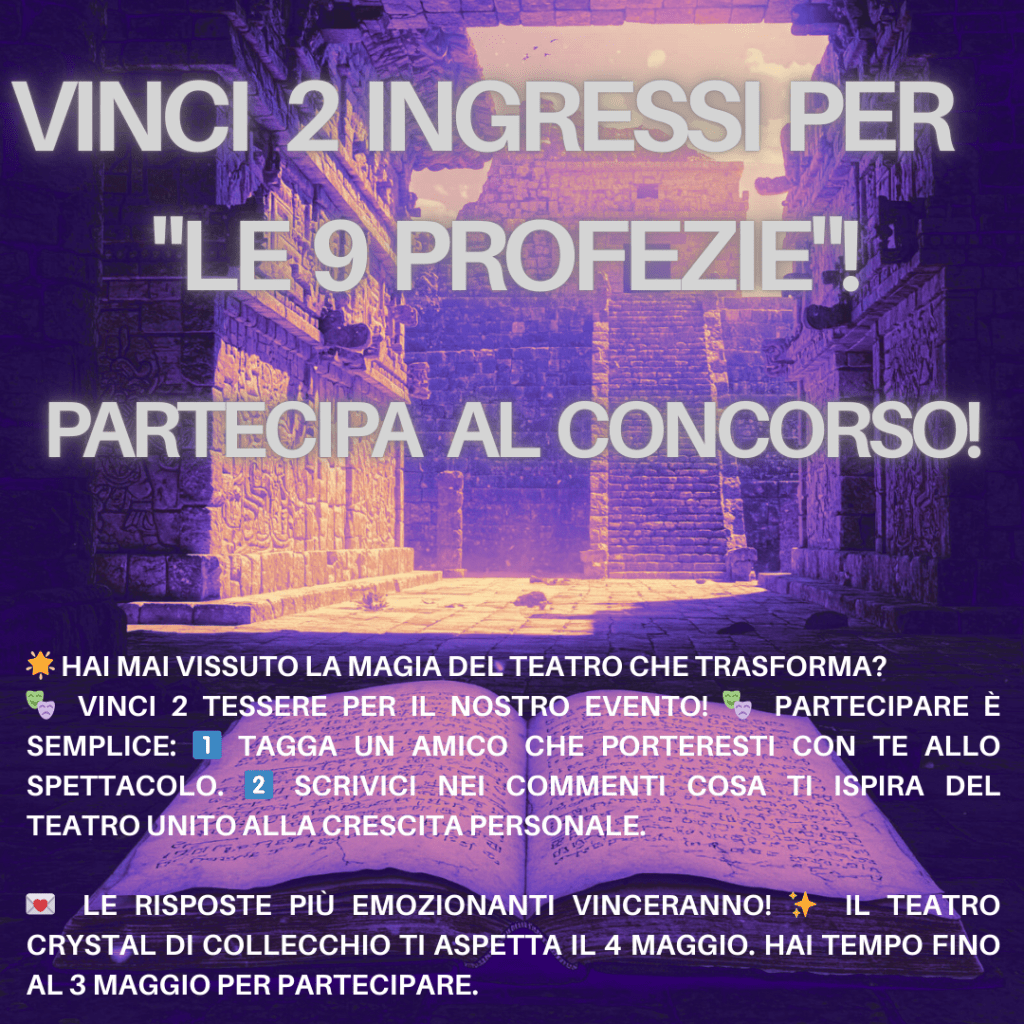 Il Teatro Crystal di Collecchio aprirà il sipario il 4 maggio 2025 per uno degli eventi culturali più attesi della stagione: Le 9 Profezie. Tratto dal romanzo bestseller di James Redfield, La Profezia di Celestino, lo spettacolo invita gli spettatori a un viaggio straordinario che unisce narrazione teatrale e illuminazione spirituale.